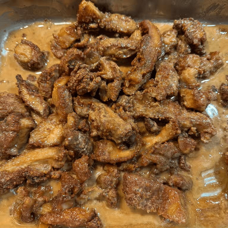 Savory chicken with bold black pepper sauce.