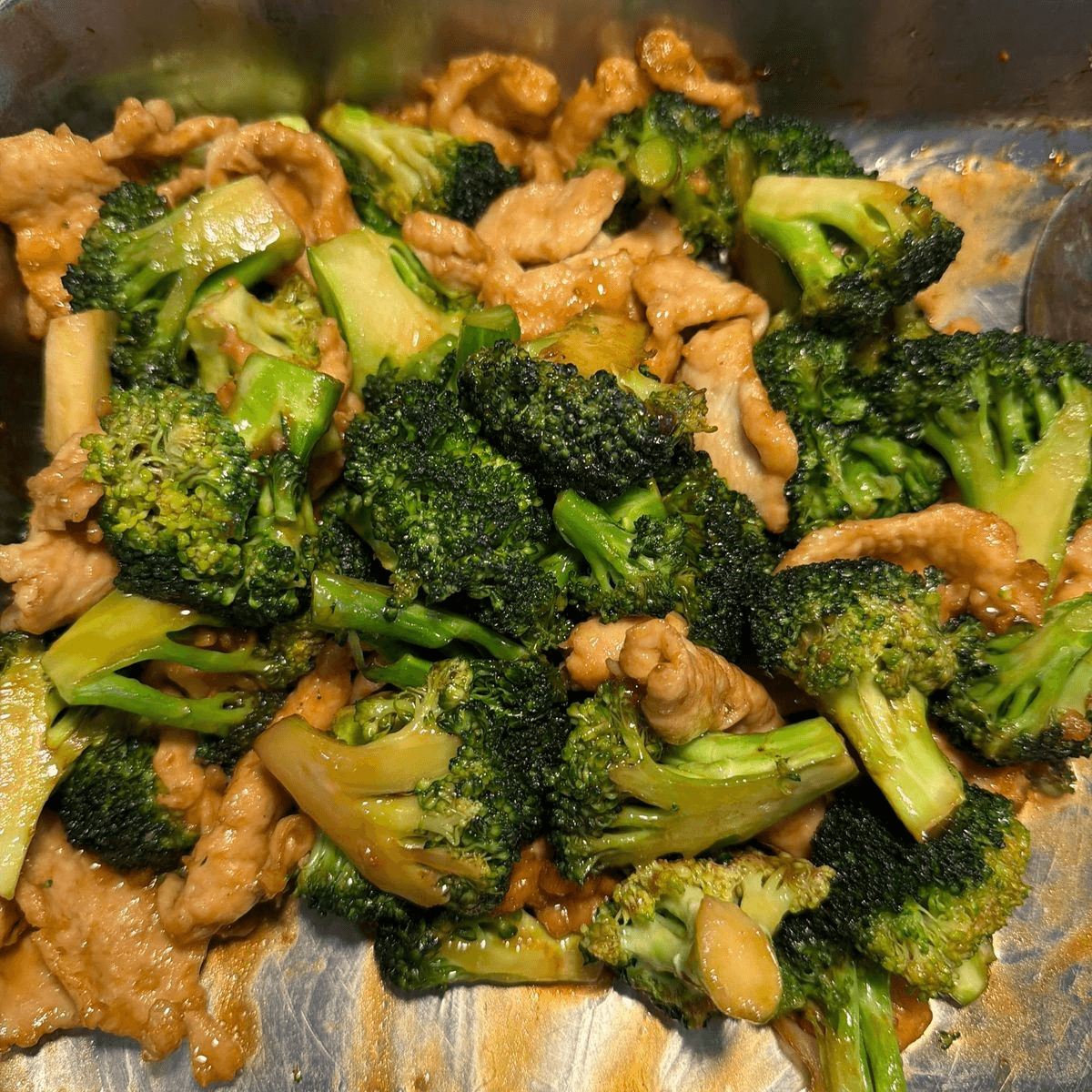 Sliced beef sautéed with fresh broccoli.