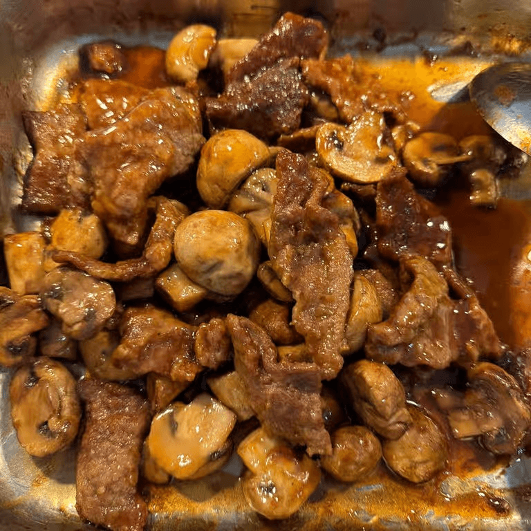 Beef stir-fried with mushrooms.