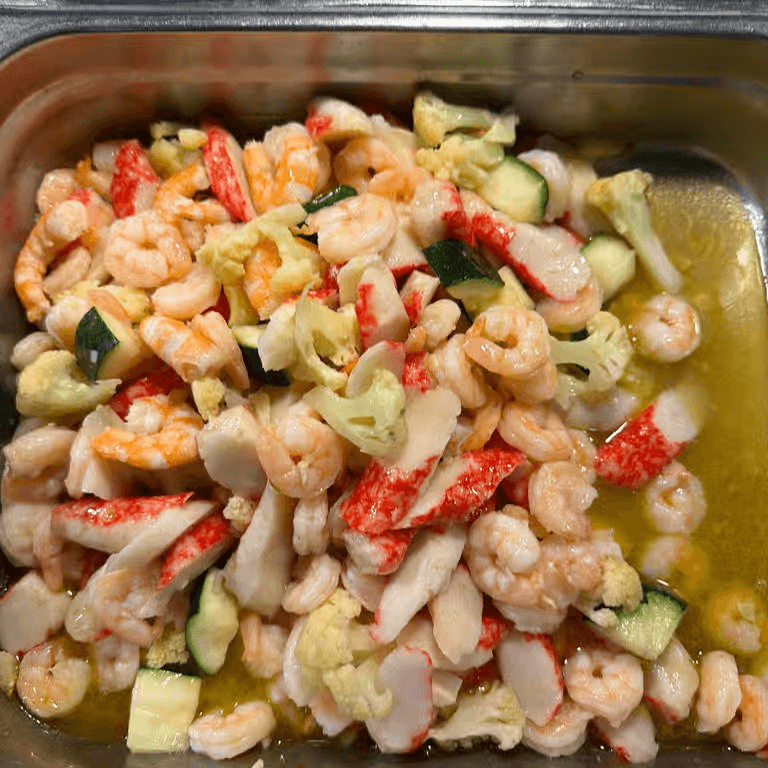 Shrimp and mixed seafood sautéed with vegetables.