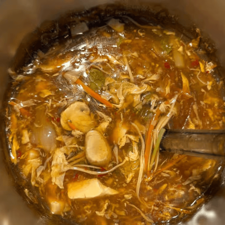 Spicy and tangy soup with tofu and mushrooms.