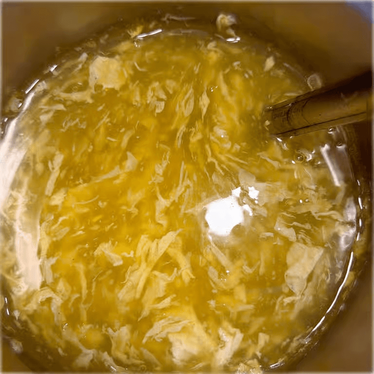 Silky egg ribbons in savory seasoned broth.