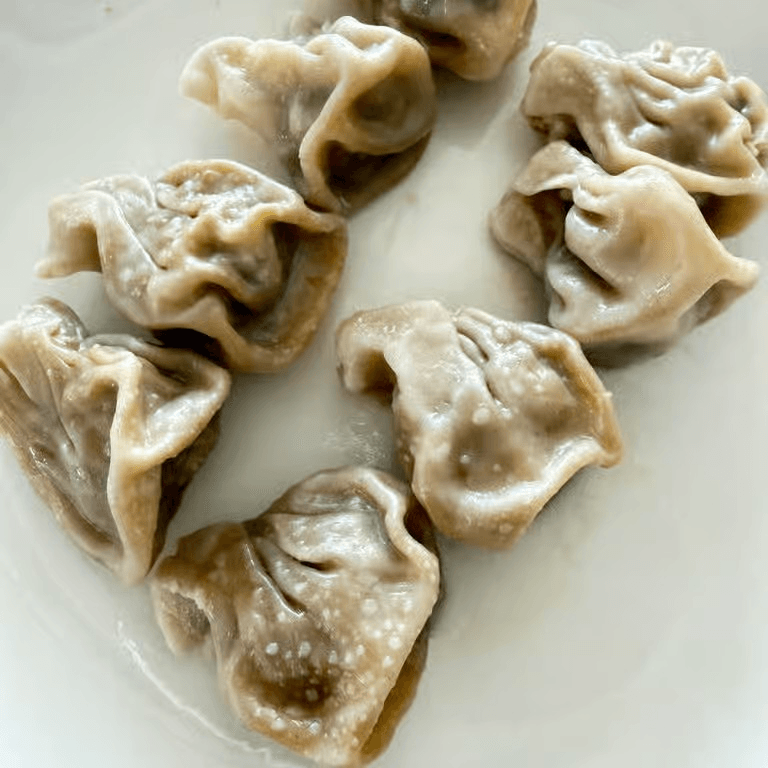 8, Tender dumplings filled with seasoned pork, steamed to perfection.