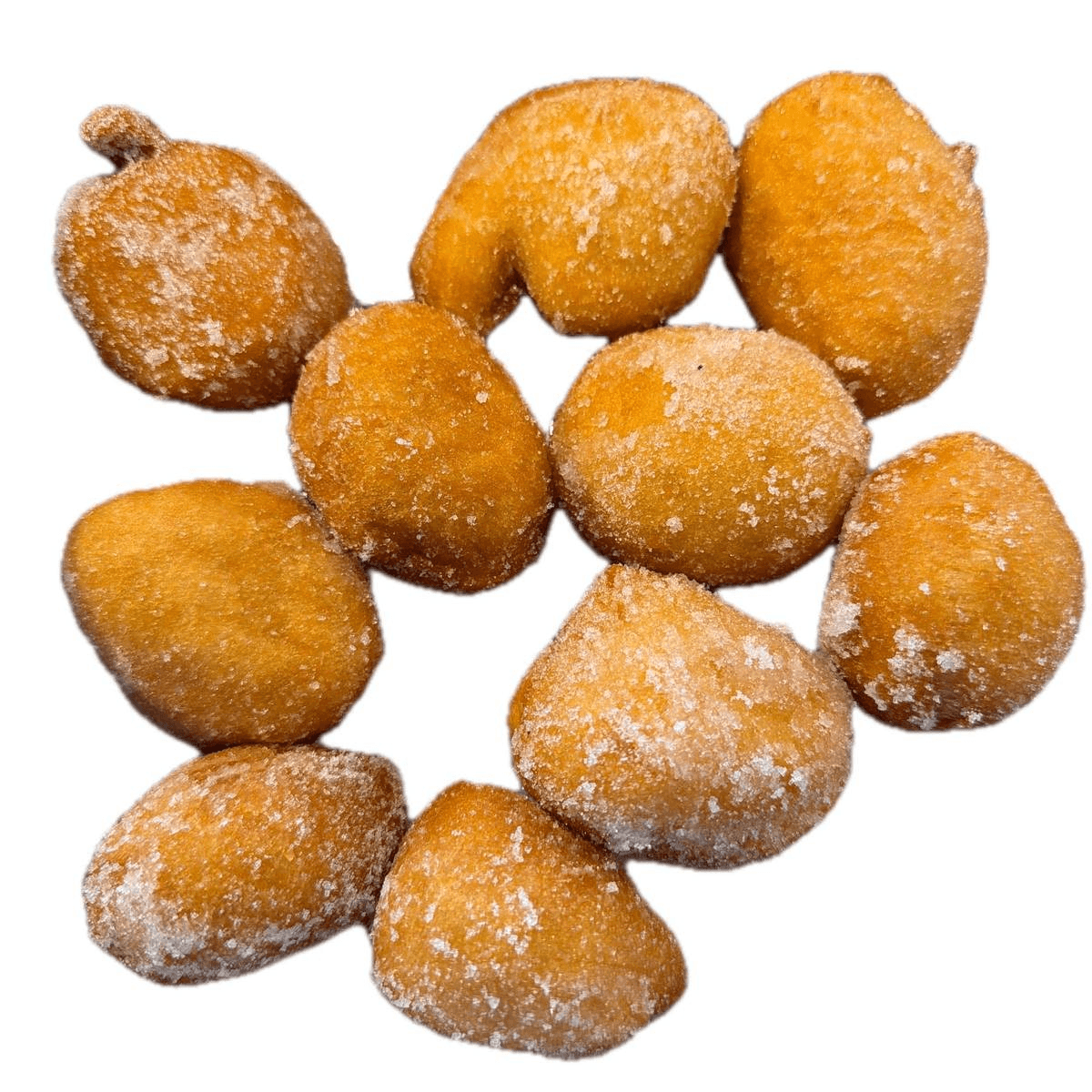 10, Warm fried donuts coated in sweet sugar.
