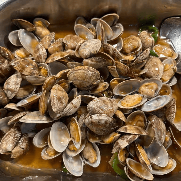 Fresh clams stir-fried in savory sauce.